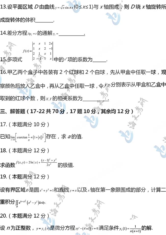 2021考研数学三真题原文完整版
